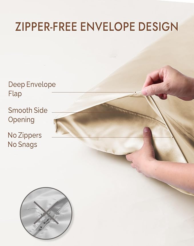 - Naturally Cool & Secure Envelope Closure - Thanks to silk’s natural temperature-regulating properties and breathable structure, our organic silk pillowcase helps keep you cool in summer and warm in winter. Our envelope closure design gently secures the pillow without zippers—so there’s no scratching, snagging, or discomfort against your skin.