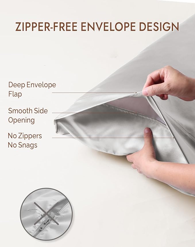 - Naturally Cool & Secure Envelope Closure - Thanks to silk’s natural temperature-regulating properties and breathable structure, our organic silk pillowcase helps keep you cool in summer and warm in winter. Our envelope closure design gently secures the pillow without zippers—so there’s no scratching, snagging, or discomfort against your skin.