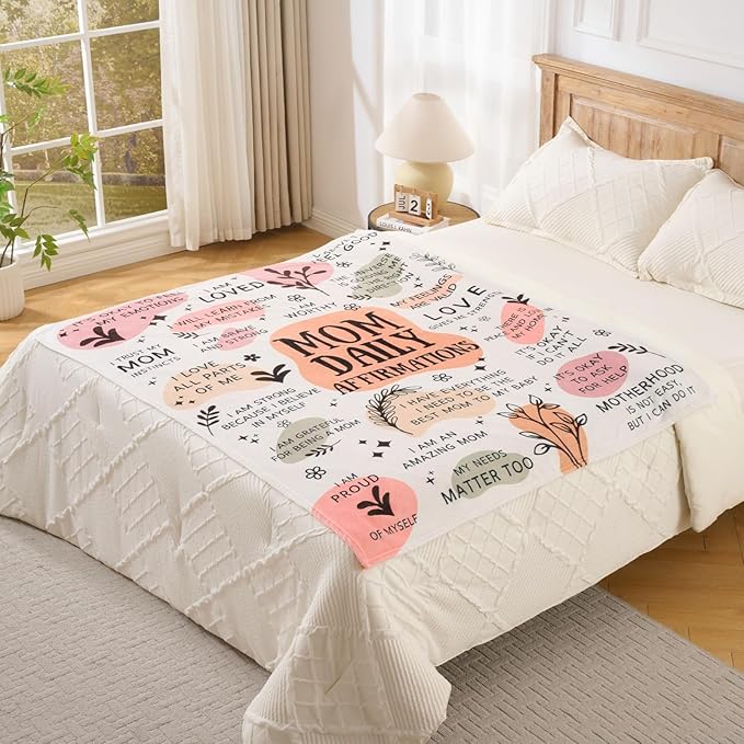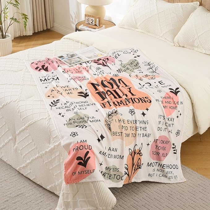 New Mom Gift Blanket 50x60 Inch – Soft Cozy Throw with Inspirational Words, Postpartum Gifts for New Mothers, Mother’s Day Birthday