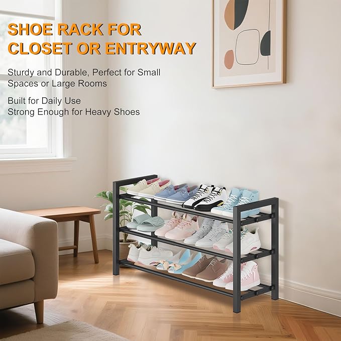 - 【Heavy-Duty Stability】 Built with 13mm thick steel tubes and reinforced connectors, each layer can bear a weight of 50 pounds, this shoe rack holds 9–12 pairs of shoes without wobbling. Stays stable even with heavy shoes or boots—[no shaking or tipping]. Rust-resistant finish makes it ideal for indoor or outdoor use.