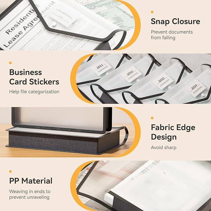 - Multifunction: Perfect for daily use, such as school subjects, office documents files, traveling A4 files and business cards. And suitable for any area of life, Creativity and crafts, home life management, office life, etc. In addition to managing important document data, finances and bills, it can also store handicraft material kits, painting tools, and serve as a DIY project planner.