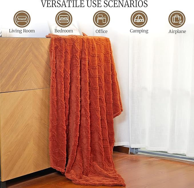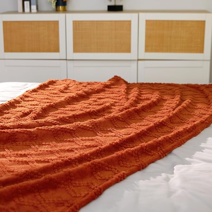 BYKOSY Jacquard Boho Fleece Throw Blanket-Cozy Fluffy Soft Lightweight Fuzzy Fall Blanket for Sofa, Couch, Bed, Chair & Car, Gifts for Teen Girls, Women & Men, Home and Dorm Decor, Rust Red, 50" x 70"