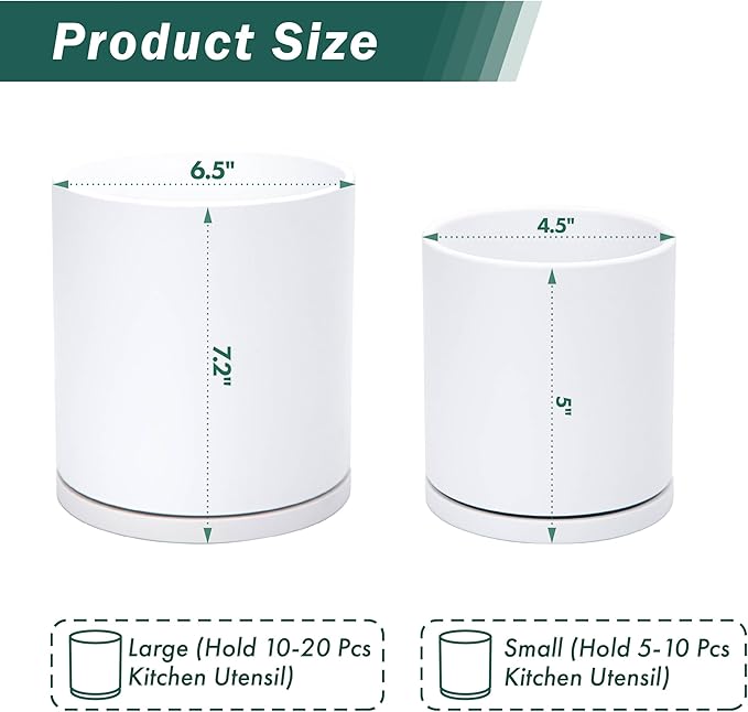 - Practical Utensil Crock Set: Includes two sizes – 5"H × 4.5"D and 7.2"H × 6.5"D – providing versatile storage for spatulas, turners, spoons, whisks, and more, keeping your kitchen counter neat and organized.
