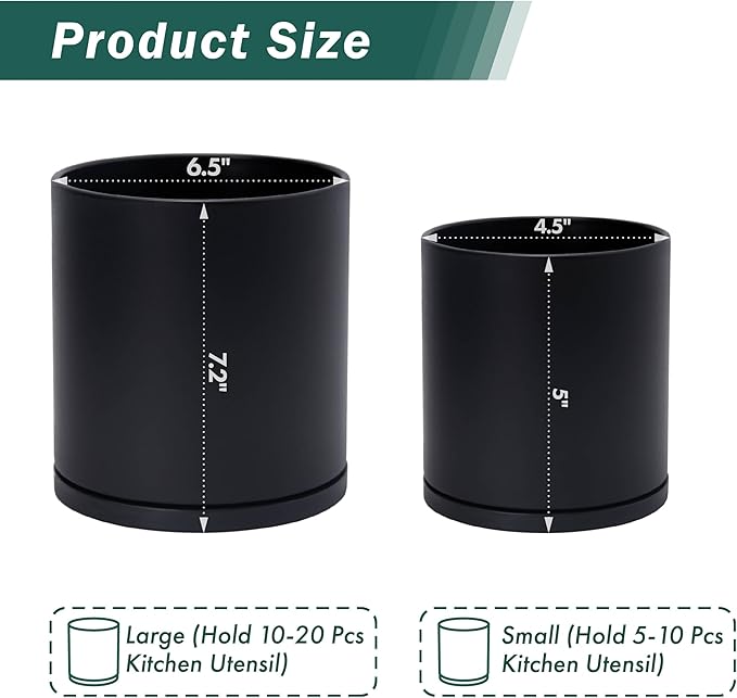 - Practical Utensil Crock Set: Includes two sizes – 5"H × 4.5"D and 7.2"H × 6.5"D – providing versatile storage for spatulas, turners, spoons, whisks, and more, keeping your kitchen counter neat and organized.