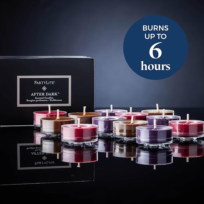 PartyLite After Dark™ Tea Lights Sampler, Velvet Plum & Amber Suede with Cashmere Cassis Scented Candles, Gift Set of 12, Aromatherapy with up to 4 to 6 Hours Burn Time, Ideal for Home Decor
