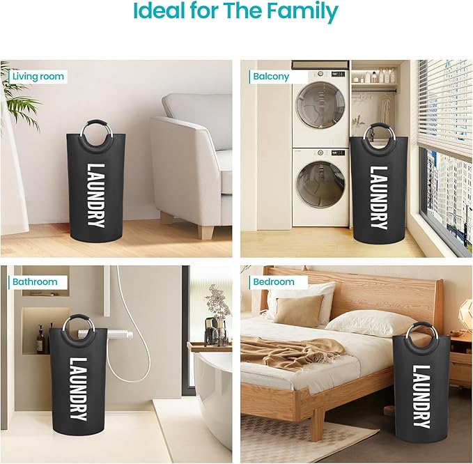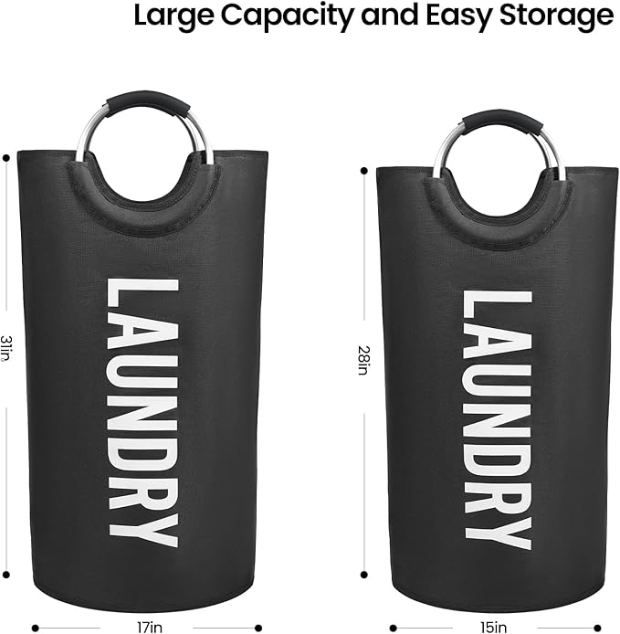 - 【Aluminum Soft Rubber Handle Design】This laundry hamper is equipped with qualified aluminum handle with soft sponge on it, providing a comfortable carrying experience for you to bring your clean or dirty clothes to your bedroom, bathroom, laundry room or any places at your home.