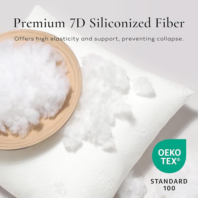 - 【Siliconized Filling】Weighing approximately 800g/7D fiber(20% more than other), the pillow insert employs upgraded siliconized filling technology with 100% high-elasticity virgin fibers. Provides powerful support with a rapid three-second rebound.