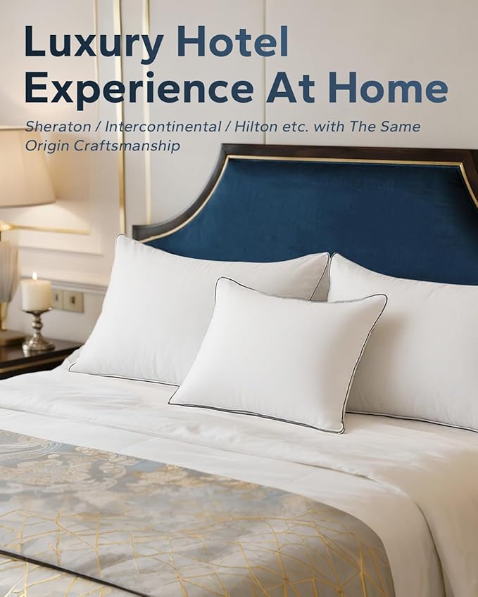 - 【LUXURIOUS EXPERIENCE AT HOME】Inspired by the comfort of high-end hotel suites, this bed pillow is designed to grant you a nightly experience of exceptional comfort and sophistication. Whether for personal enjoyment or hosting guests, it adds a touch of refined luxury to your bedroom.
