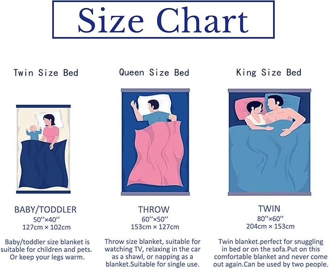 - [Convenient and Versatile Sizes] Available in 40×50, 50×60, and 60×80 inches, these flannel blankets fit various needs. Ideal for sofa, bed, or armchair, they also serve as travel, picnic, or outdoor companions. Each size offers cozy warmth and comfort, blending seamlessly into your daily routine without being cumbersome.