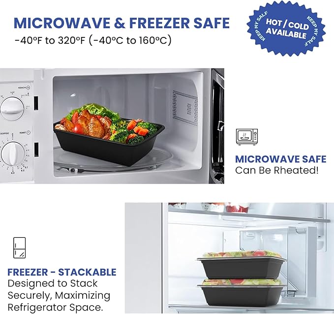 - 🔥❄️ MICROWAVE & FREEZER SAFE: Easily go from freezer to microwave! These BPA-free disposable food containers withstand temperatures from -40°F to 248°F, allowing you to reheat leftovers or freeze meals for later without switching dishes