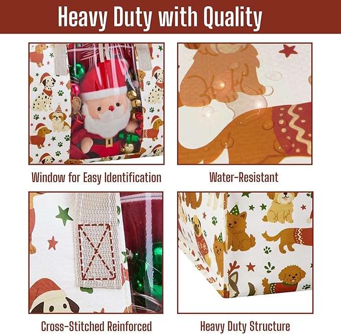 VENO 6 Pack Moving Bags, Large Christmas Storage Bins with lids, Packing Supplies for College, Alternative to Moving Boxes, Foldable, Heavy-Duty Tote, Christmas Pattern (Holiday Pups, 6 Pack)