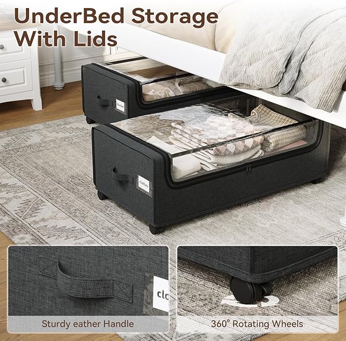 - Easy Mobility with Locking Wheels: Featuring under bed storage with wheels, these units have 360-degree swivel casters—two with locks—for smooth movement and secure placement under your bed