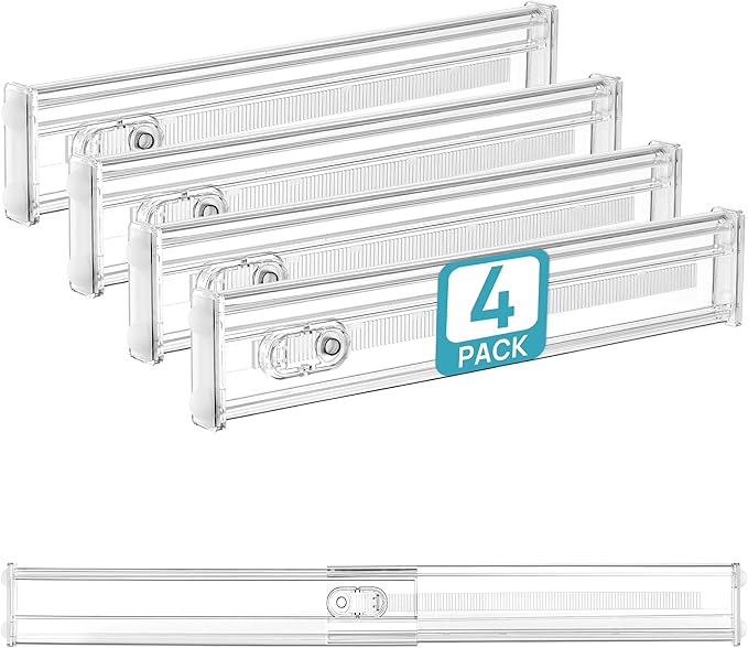 Vtopmart 4 Pack 2.36" Short Upgrade Drawer Dividers for Kitchen Drawer, 12.8"-22.3" Expandable Kitchen Drawer Organizer, Clear Plastic Organizer Separator for Flatware, Utensil, Cutlery, Underwear