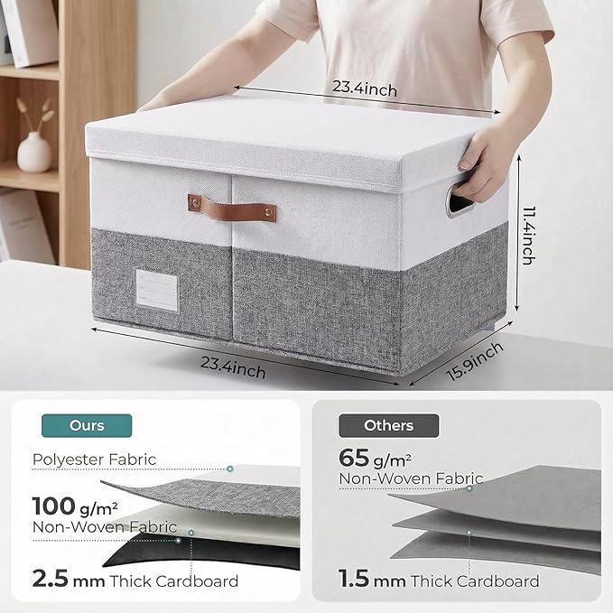 - 【Fashionable Bins】Designed to match interior decor and style in any room in the home or office. Enjoy the relaxing ambiance of the soft gray and natural white neutral color scheme.