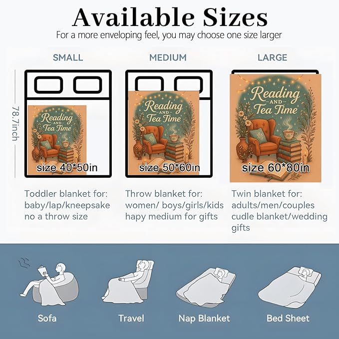 Book Blanket, 50"x40" Flannel Cozy Lightweight Reading and Tea Time Throw Blankets Gifts for Couch Bed Living Room Decor, Soft Blanket for Women Kids