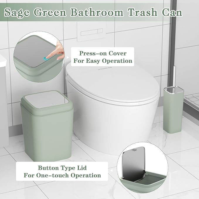 XLHOMO Bathroom Set, Sage Green Bathroom Accessories Set with Press-on Lid Bathroom Trash Can, Soap Dispenser, 10PC Bathroom Accessory Set for Home