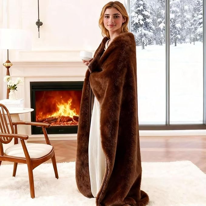 - 【Ultra Soft Luxury Fluffy Faux Rabbit Fur Throw Blanket 】— 880 GSM plush with a smooth, suede-like reverse delivers cloud-soft comfort and balanced warmth for cozy nights